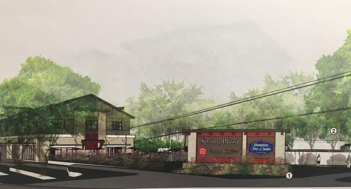 At the request of the Planning Commission, the developer is incorporating a large outdoor plaza, with seating areas, as gathering space for the community. Swanson said this is something the commission felt the existing retail area lacks. The entrance to the property would also included a water feature.