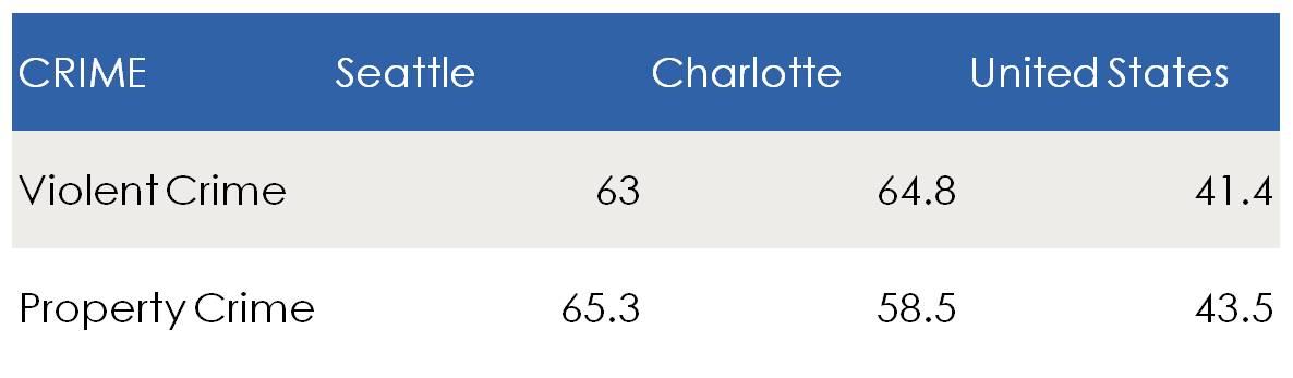 - Charlotte is 48.3% less expensive than Seattle.