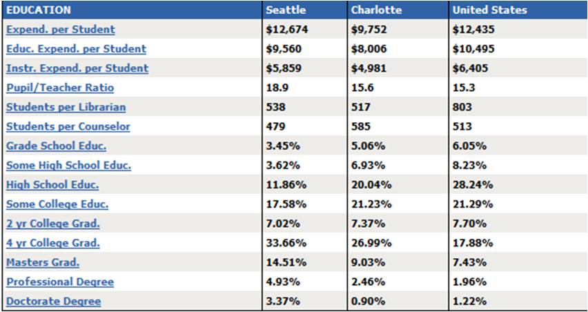 - Charlotte spends 26.1% less per student than Seattle.Â